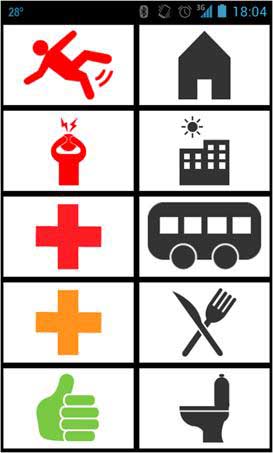 Debido a la afasia, el usuario tiene dificultades de expresión tanto para hablar como para leer/escribir y por eso hemos desarrollado una aplicación móvil que le permite comunicarse remotamente con su entorno a través de mensajes cortos (SMS). En la primera iteración del proyecto creamos un panel de fotografías predefinidas. Cuando el usuario seleccionaba una foto, se enviaba un mensaje a su mujer con el texto asociado a esa foto (por ejemplo, “Acabo de llegar a casa”). En sucesivas iteraciones del proyecto hemos ido añadiendo funcionalidad: posibilidad de modificar las imágenes (fotos o pictogramas) y los textos del panel, envío de mensajes a otras personas a través de un nuevo panel de destinatarios, permitir a los receptores contestar con imágenes a los mensajes enviados por el usuario, etc.