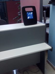 Otra de las mejoras en la comunicación ha sido la adquisición de bucles magnéticos para los mostradores con servicios de atención al ciudadano, para que las personas con implante coclear y/o con audífono, colocando éste en posición “T” puedan disponer de una comunicación libre de barreras y más limpia. Los bucles magnéticos, crean un campo de inducción donde se genera una barrera con el ruido exterior, permitiendo así una comunicación más clara. Facilitar la comunicación supone también facilitar la participación.